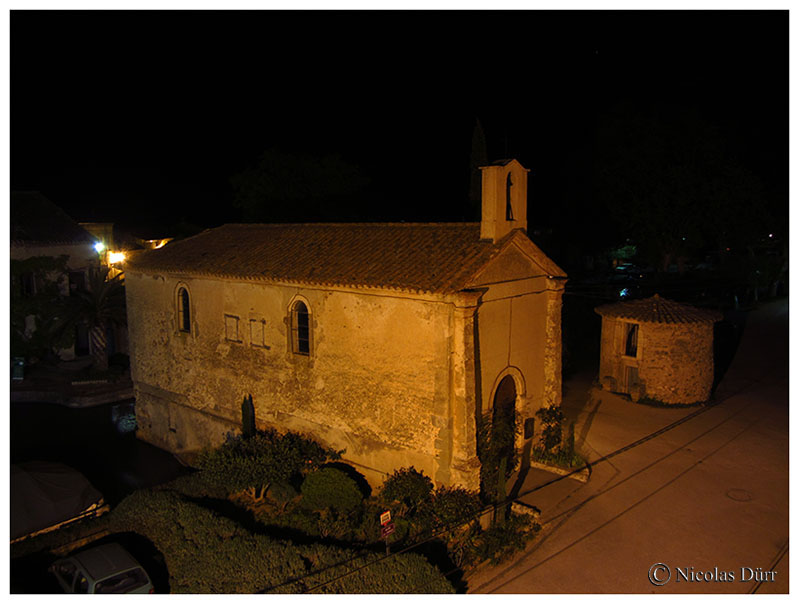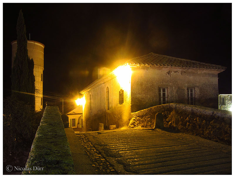 Les candélabres font ressortir également le très beau bâtiment des chambres d’hôtes « La maison des escaliers ».