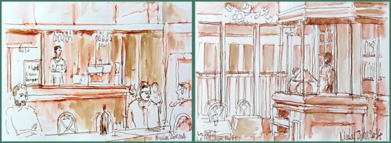 Plutôt que de restaurer dans l’une des cafétérias du musée, nous avons opté pour nous rendre dans un restaurant de cuisine lyonnaise, situé à proximité, « Le petit mâchon », et cela m’a donné l’occasion d’en faire deux dessins à la que je vous présente ci dessous.
