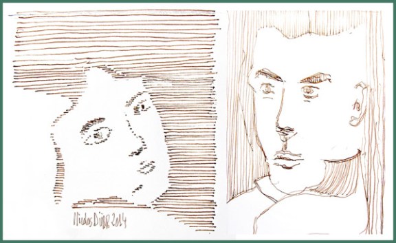 Aux techniques du trait mise en application le matin, s’est ajouté, l’après midi, des exercices de lavis. Pour la petite anecdote, j’ai certainement du penser à l’actrice Valérie Mairesse en peignant le portrait ci dessous à gauche.