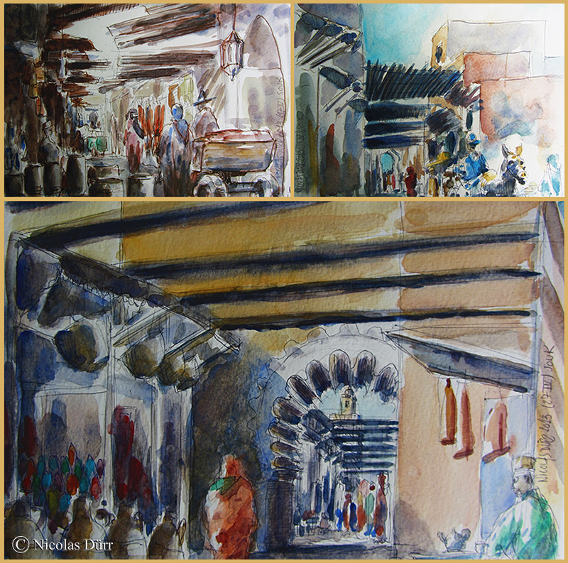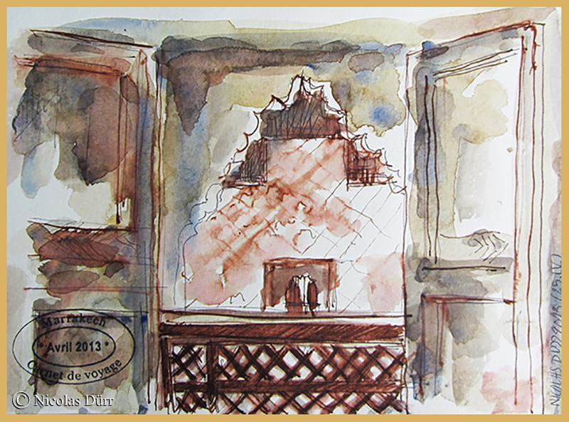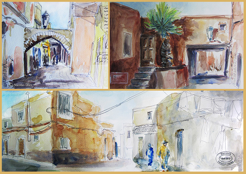 A travers ce récit, je vais vous faire partager un souvenir marocain, concentré essentiellement sur Marrakech lors d’un séjour organisé par la carnettiste-aquarelliste-portraitiste Sonia Privat.