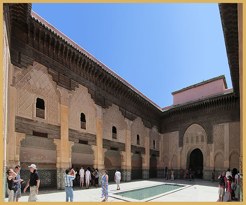 Voici un des lieux emblématiques sur Marrakech, la Médersa, fut durant plus de 400 ans un lieu d’accueil pour les étudiants désireux d’acquérir ou approfondir leurs connaissances dans le domaine des sciences, et en théologie. 132 chambres accueillaient des étudiants venus de l’extérieur. Jusqu’à 900 personnes pouvaient venir y étudier.