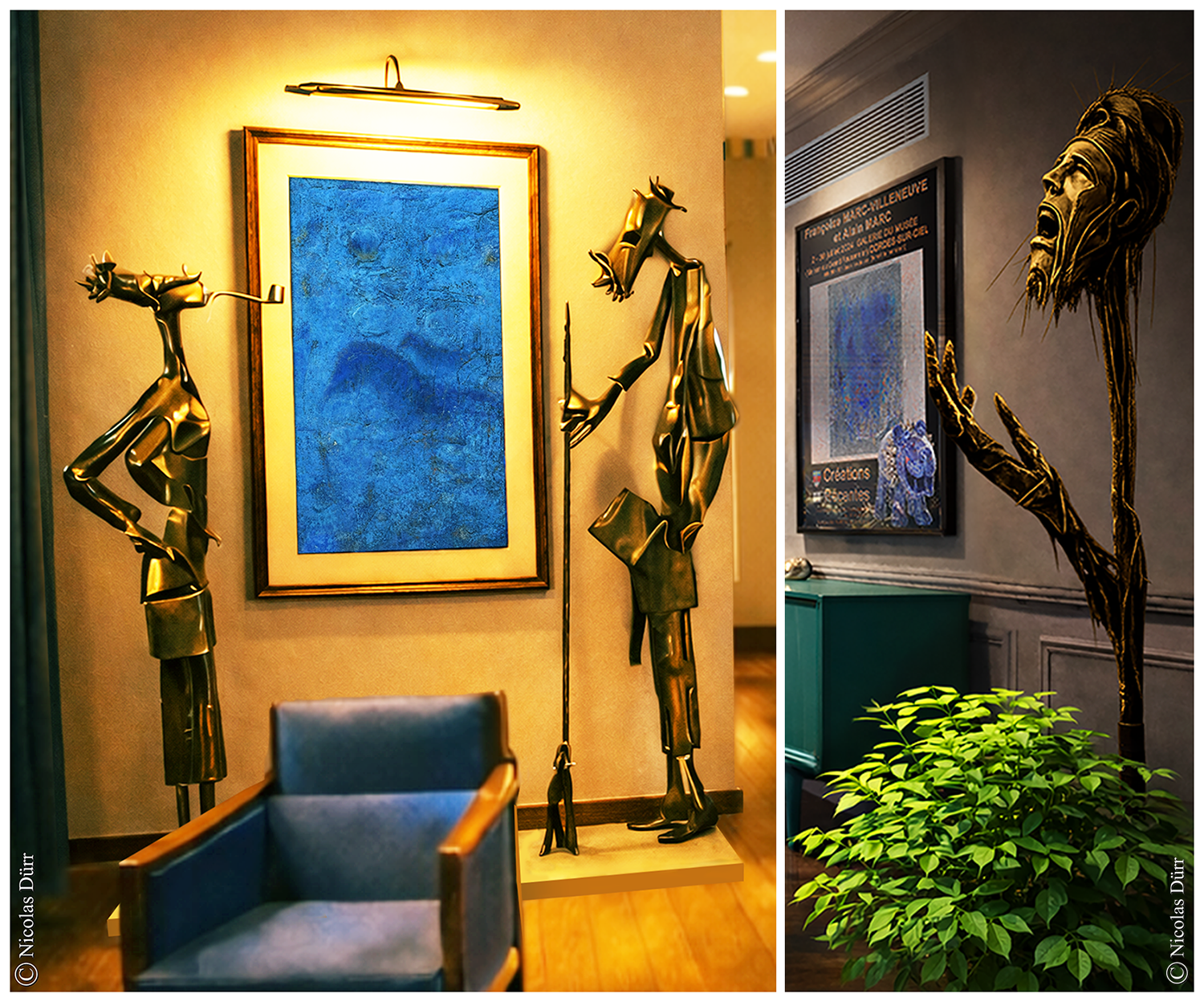 - Présence de sculptures élancées en métal → touche artistique forte, presque galerie.