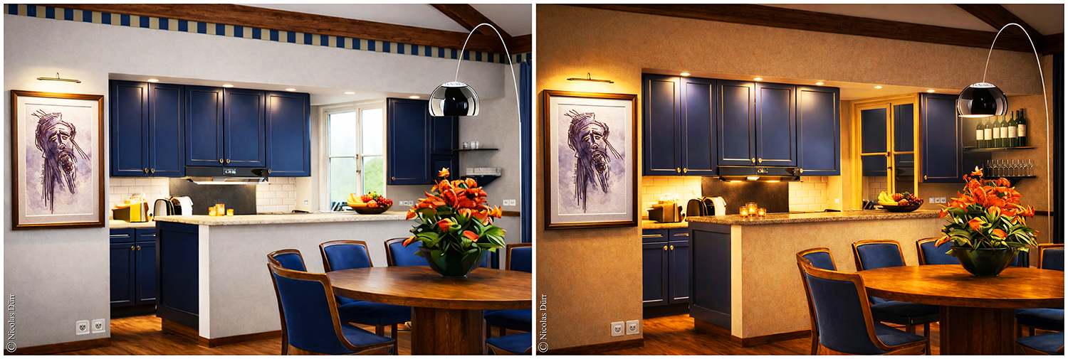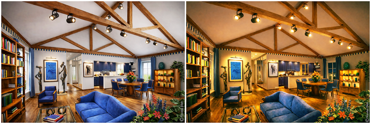 Un travail d’éclairage qui transforme l’ambiance (jour / nuit) :