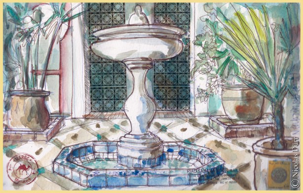 I will conclude this article by one of the architectural ‘pearl’ of this city, which reflects the elegance of the seventeenth and eighteenth century which the Provencals have very well retranscribe, by inspiring themselves on Versailles lifestyle. There are many places in the world which are full of beauties that make me ‘vibrate’, for example the Gailhousty Epanchoir which is on the Canal of ‘Jonction de la Robine’ (you can descover one or my watercolour here) , not far from the Canal de Midi or the courtyard of the Lions in Alhambra and the Gardens of ‘Généralife’ in Granada in Spain. This mansion is one of them. It was built on the outskirts of the city at that time, in a rural setting that this garden has helped to maintain and which makes us forget the busy street that is behind the building.