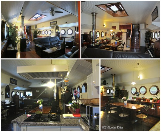 Je suis arrivé en voiture en fin d’après-midi et ai été accueilli dans cette péniche des années 50 d’abord par Pascal et ensuite par son épouse, Myriam (au physique me rappelant celui de l’actrice Caroline Bourg, que l’on peut voir dans le film « Intouchables » aux côtés de l’excellente Audrey Fleurot, mais aussi dans un rôle récurrent dans la série « Plus belle la vie »).