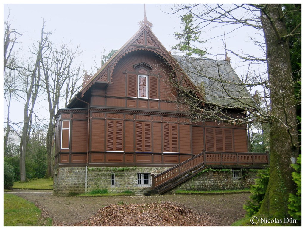 Je terminerai par une exception, cependant, par rapport au codes architecturaux à une époque ou l’on savait encore construire « du beau » : le chalet suédois, présenté à l’Exposition Universelle de 1889 à Paris avant d’être démonté et remonté ici.