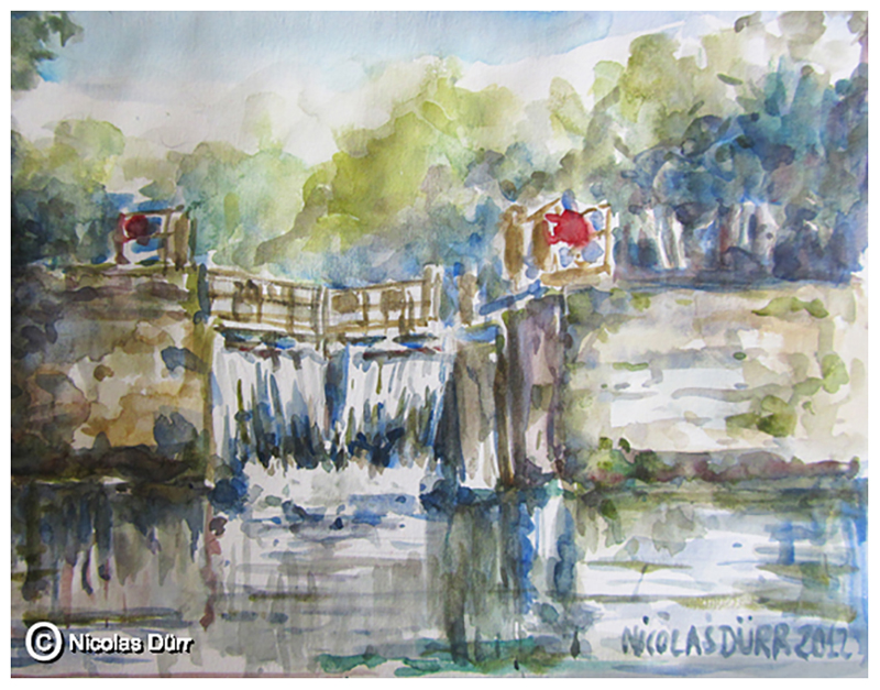 … suivies de deux aquarelles du Canal du Midi (autre sujet majeur), l’écluse de la Douce et l’arrivée sur Homps en venant de Carcassonne.