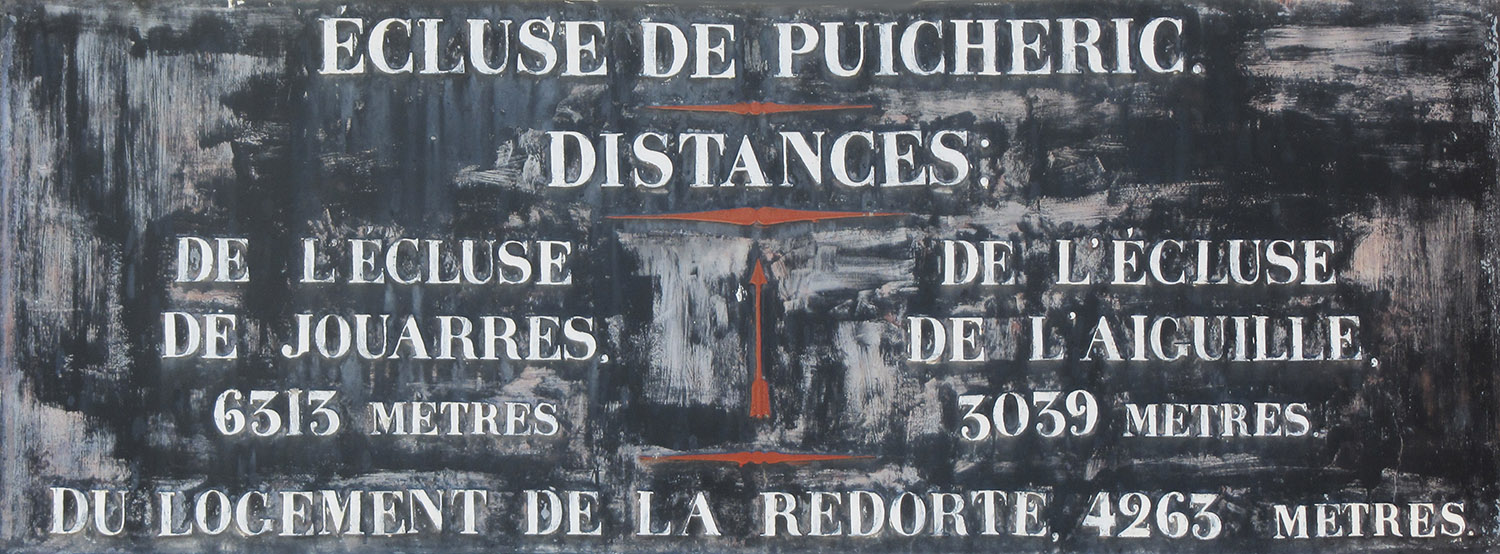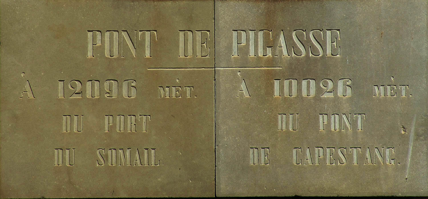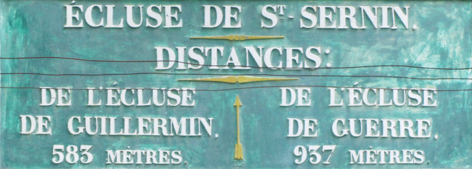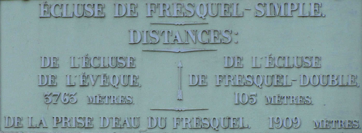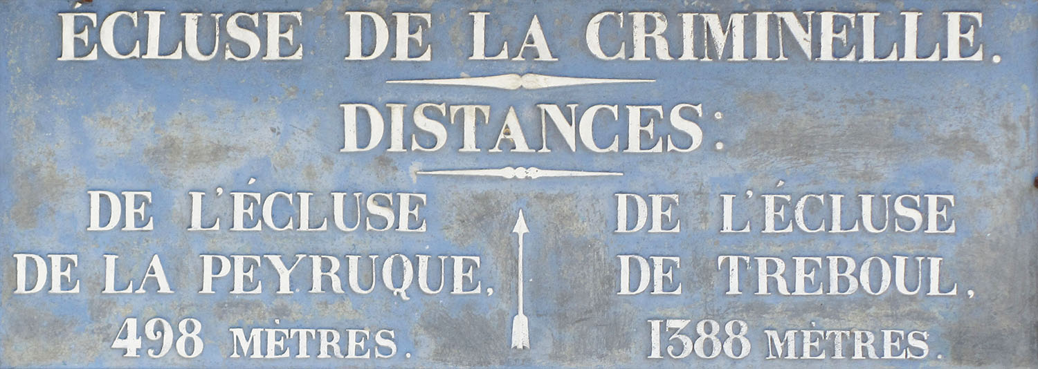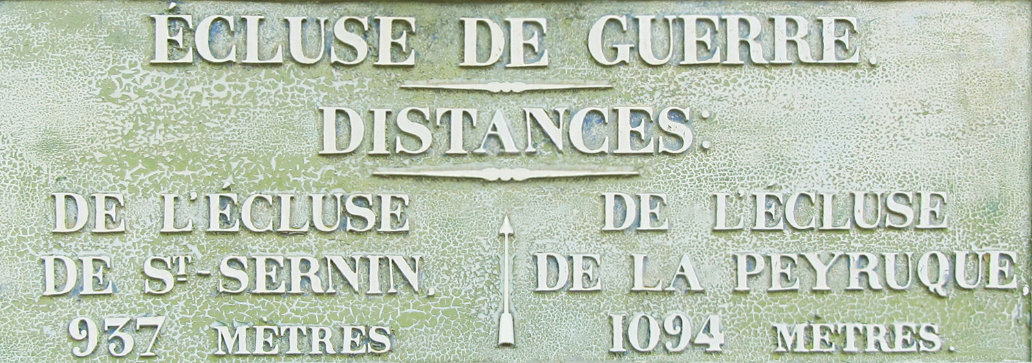Merci à Samuel Vannier, travaillant aux archives du canal du Midi, de m’avoir transmis la photo de cette plaque, qui a miraculeusement été sauvée lors de la destruction du bâtiment éclusier en 1976, et qui se trouve aujourd’hui dans le jardin d’un particulier.