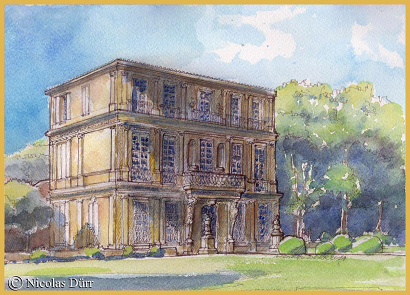 Here are, to start, five watercolours and one work in oil pastel of a magnificent building of the Pavillon de Vendome, which we mentioned in the previous article and which was originally away from the City.