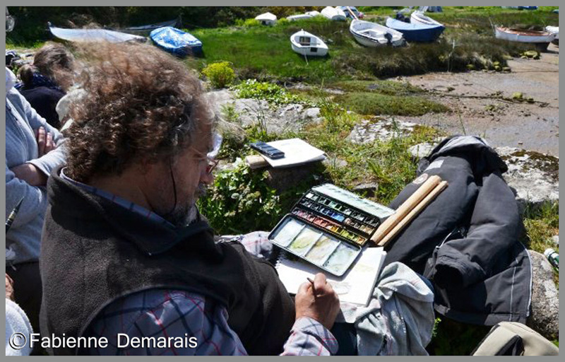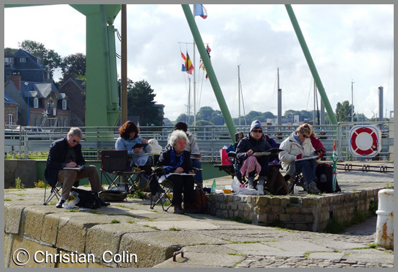 Par une belle journée ensoleillée du dernier samedi de l’été 2015, sur l’initiative d’une journée organisée par l’aquarelliste normand Christian Colin que je rencontrais pour la première fois, et entouré de près d’une dizaine de « condisciples », sans doute tout aussi désireuses, comme moi, de continuer à prendre un « bol d’air » suite aux congés d’été, je vous présente mes travaux du jour.