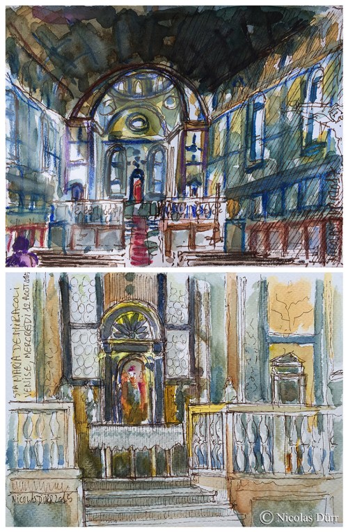 Un article intéressant sur Venise publié sur le blog des Urban sketchers, avec une mention particulière pour les aquarelles d’Alex Hillkurtz.