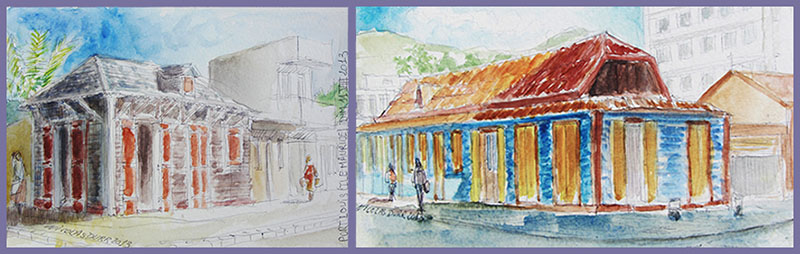 Coming back to our subject, as soon a I arrived on the island, the charm immediately operated and forgetting my tiredress, I got to to work quite quickly. Below, there are two views of the capital ; on the left some colonial architectures near the « Champs de Mars » racecourse, and on the right, the mountain mass witch delimitates Port-Louis with the « Pouce Mountain ».