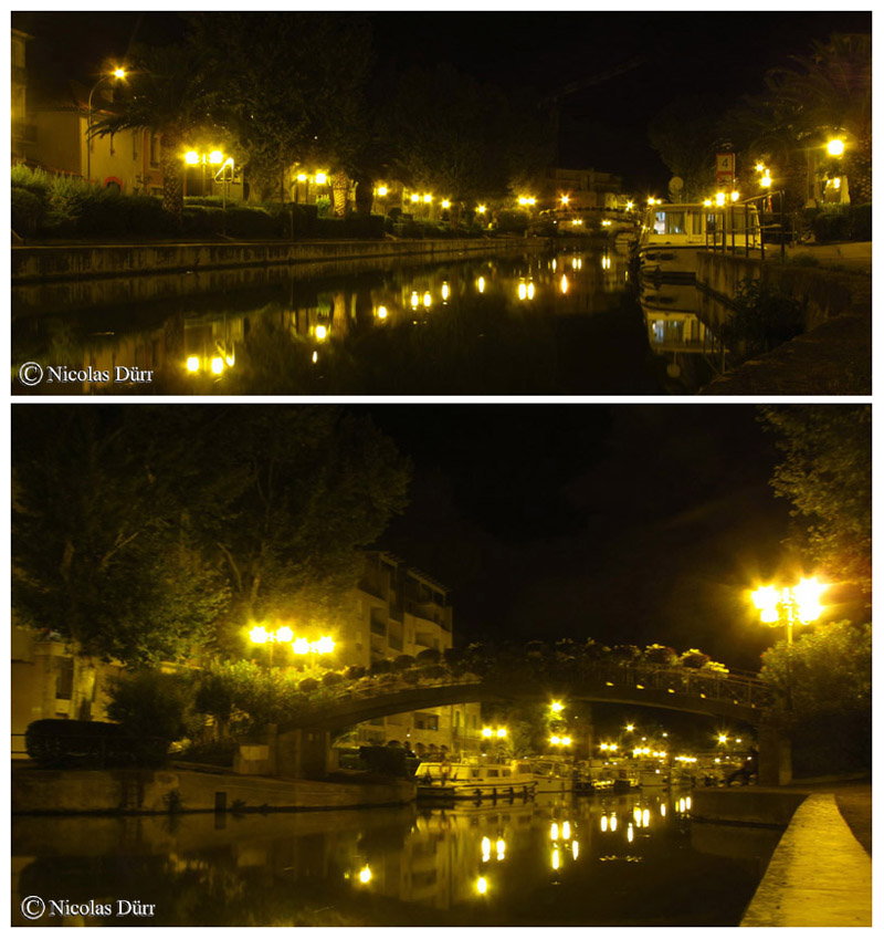 Sur la photo ci dessous en haut à gauche, l’écluse de Moussoulens, porte d’entrée sur le Canal de la Robine, à bassin simple, long de 31 km, qui mène jusqu’à la mer, à travers 6 écluses et 5 biefs. L’ouvrage, construit en 1691, fut surélevé par la suite pour protéger le canal des crues du fleuve.