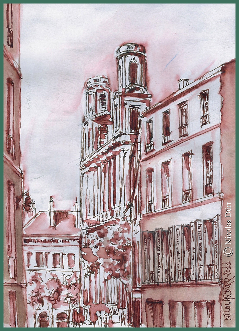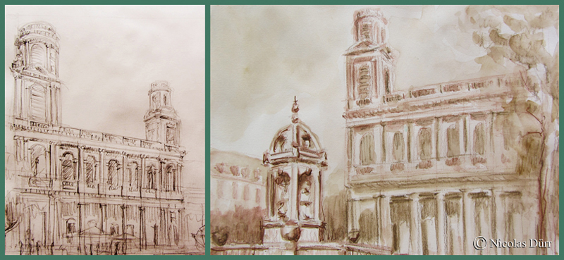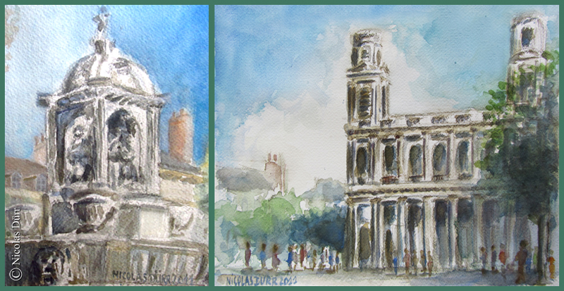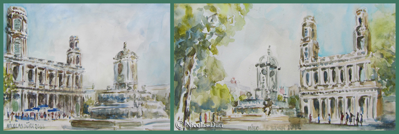 Voici maintenant l’avant dernier sujet de la journée, une vue sur l’île-de-la-Cité, en aquarelle.