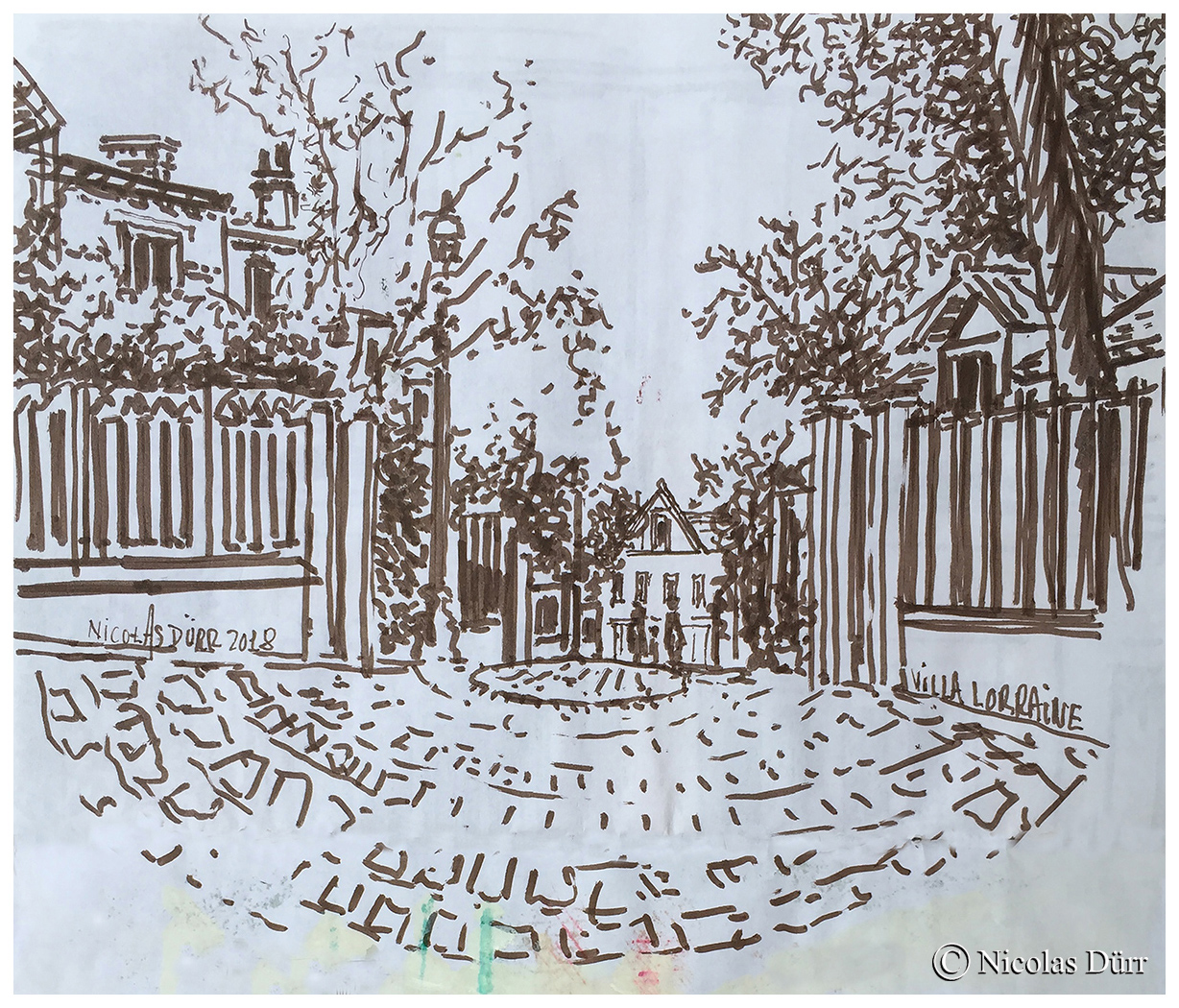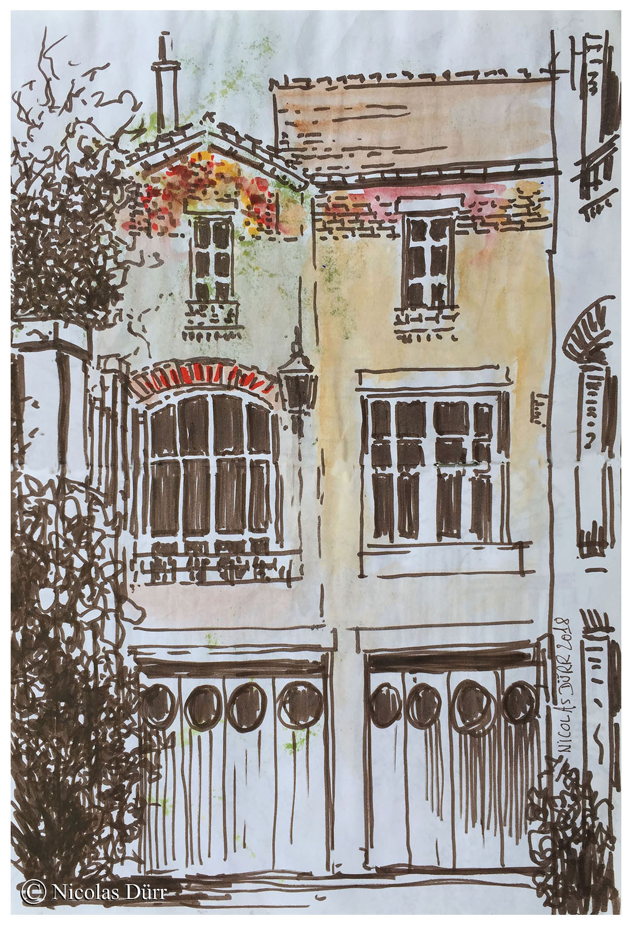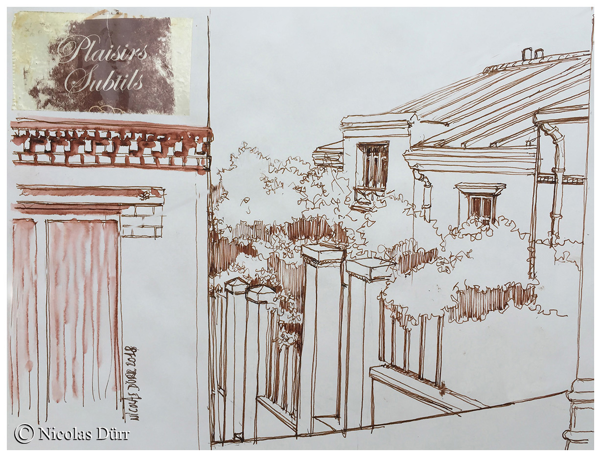 Ci-dessous, 3 aquarelles de la villa Eugène Leblanc, avant de changer d’endroit et de nous rendre de l’autre côté du parc des Buttes Chaumont.