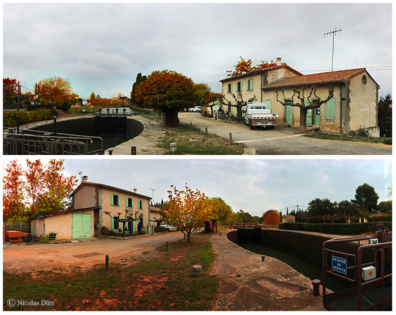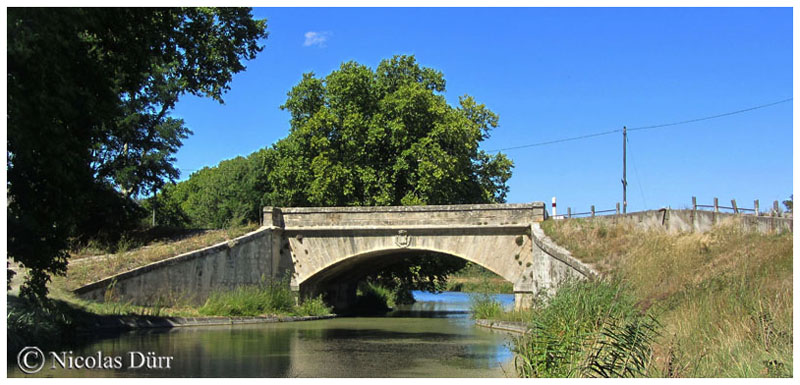 C’est sur une vue en amont de l’ouvrage que se termine cet article retraçant cette très agréable après midi d’été. Il est à noter que peu après, en direction de l’Est, le Canal du Midi quitte définitivement le Minervois en délimitant le Narbonnais et le Biterrois d’abord, avant d’entrer définitivement dans le Biterrois.