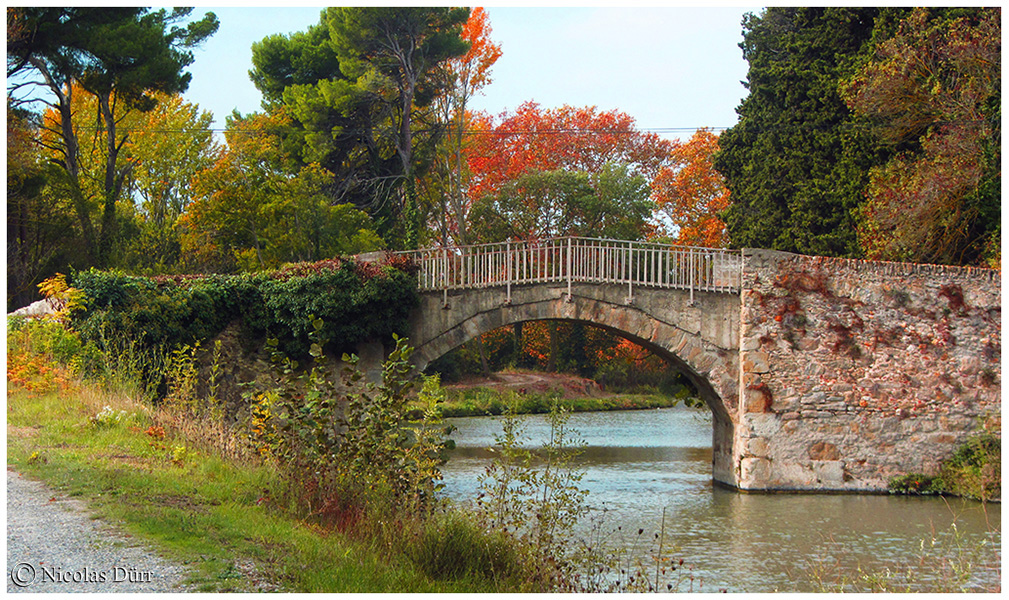 Une de mes amies que j’ai rencontrée un jour de mauvais temps, m’avait affirmé que « la vie était faite pour être vue en couleur ». C’est ce que je vais m’efforcer de retranscrire à travers cet article consacré à la courte section en boucle du Canal du Midi qui délimite Capestang et Ouveillan, entre le Pont Neuf que vous découvrez ci dessous, et le Pont Vieux, en progressant vers l’Est.