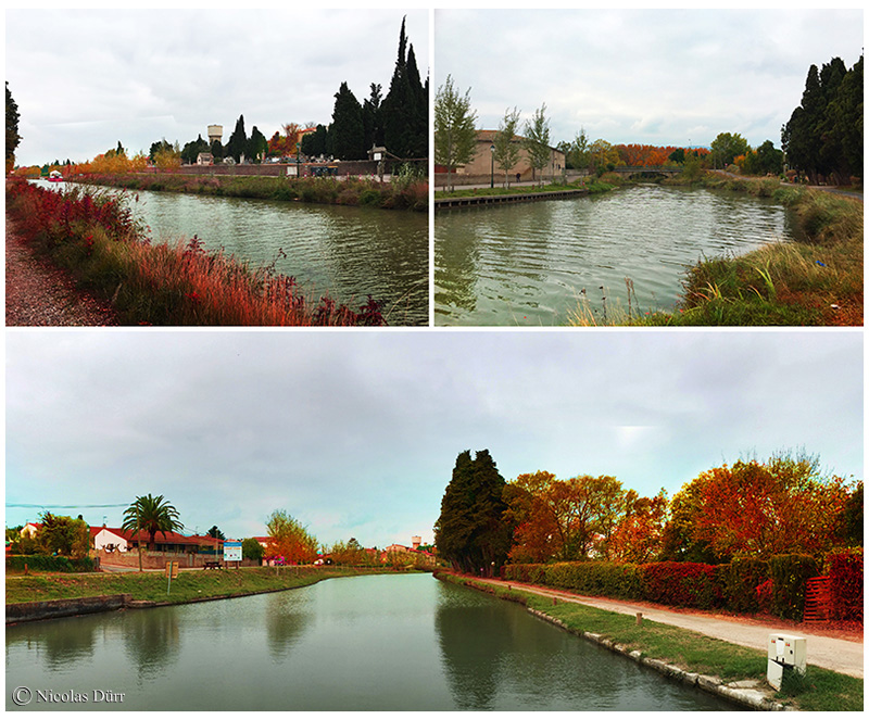Nous nous trouvons également sur un « carrefour » vinicole, l’AOC des vignes diffèrent selon la rive du canal et le pays ou elles se trouvent (Appellations « Corbières », « Minervois » ou « Saint Chinian », plus à l’Est).