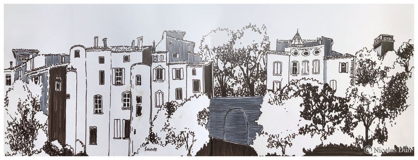 Ici aussi, un autre point de vue dégagé sur le village avant que d’autres arbres, je l’espère, ne soient vites replantés de manières à ce que les générations futures puissent profiler de nouveau de leur ombre.