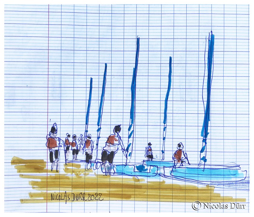J’en profite aussi pour croquer personnages, bateaux et bâtiments.
