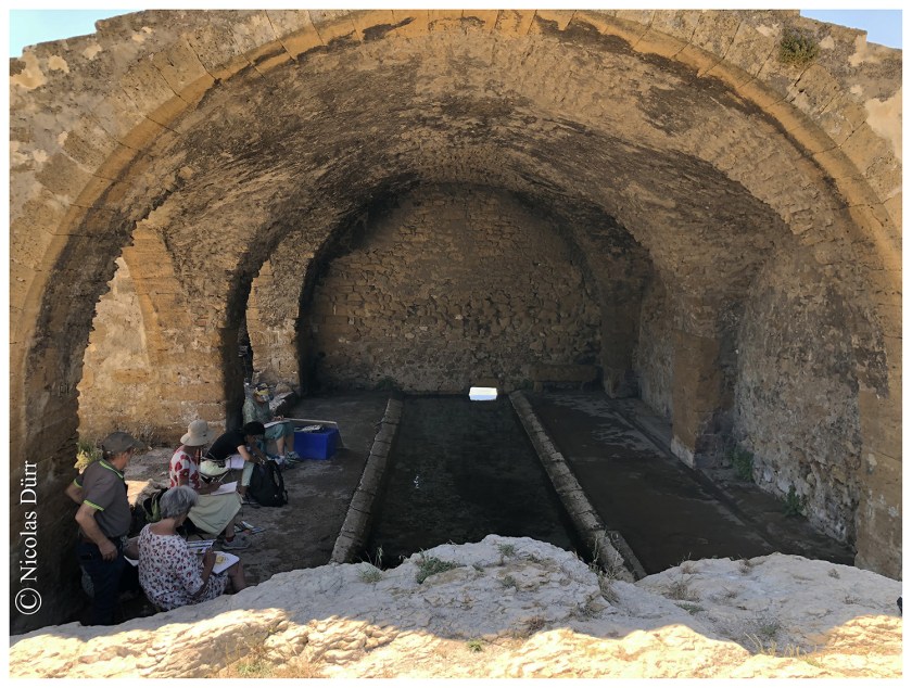 Il est construit au dessus de la source d’eau douce qui alimente le bassin. En glanant des infos ici et là, j’apprend que jusqu’à une période pas très lointaine, des individus venaient y laver leur tapis.