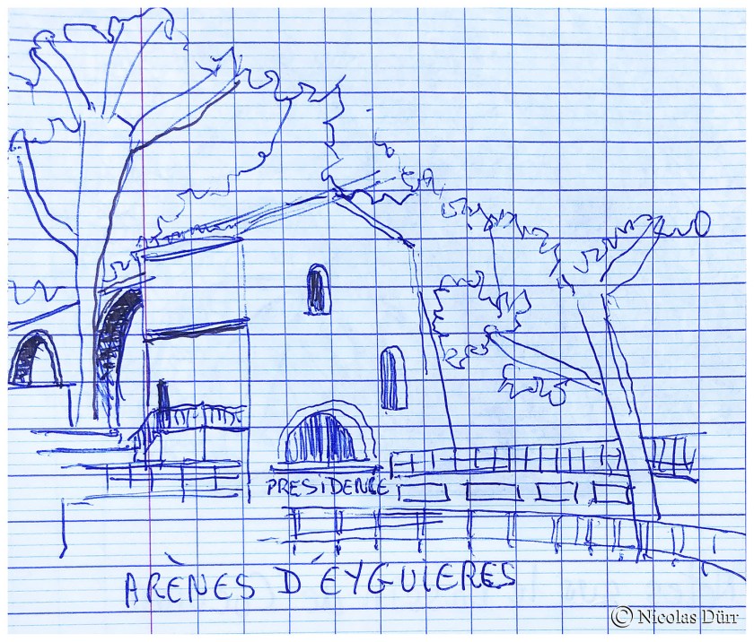 Retour sur Eyguières pour un rapide croquis des arènes.