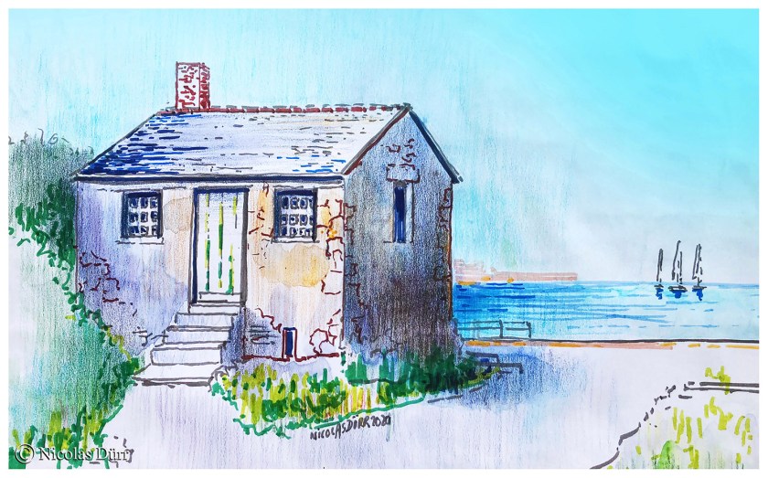 Pendant les 55 jours du confinement en France, je me suis permis de répondre à quelques défis graphiques lancés sur les réseaux sociaux. J’ai également participé à des visioconférences organisées par le peintre aquarelliste et maître de stages Alain Marc, sur des sujets variés comme le Québec, l’Amérique du Sud, le Maroc ou la Provence.