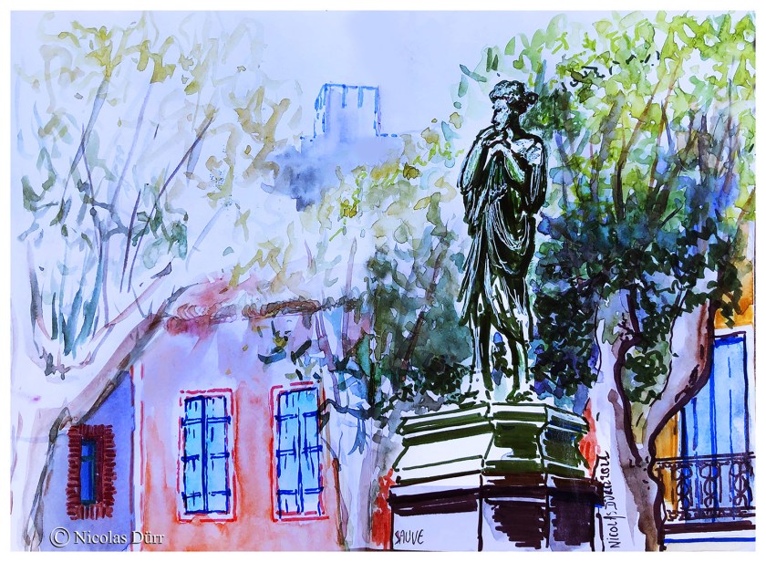 Voici le quatrième et dernier article sur mes escapades provençales, accompagné de visuels réalisés dans le cadre d’un stage organisé par l’aquarelliste-peintre-carnettiste et maître de stages, Alain Marc accompagné d’un groupe de participant(e)s sympathiques.