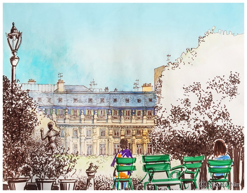 Récit graphique d’une journée passée au Palais Royal, dans le 1er arrondissement de Paris, en début d’été.